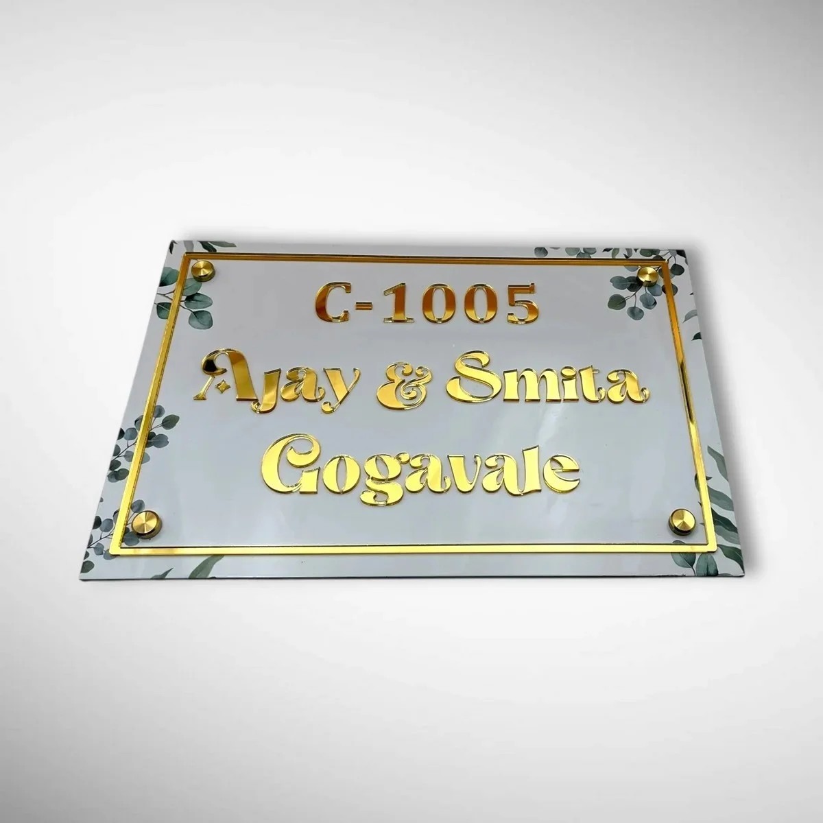 This elegant nameplate blends modern printing technology with durable materials for long-lasting shine and weather resistance.