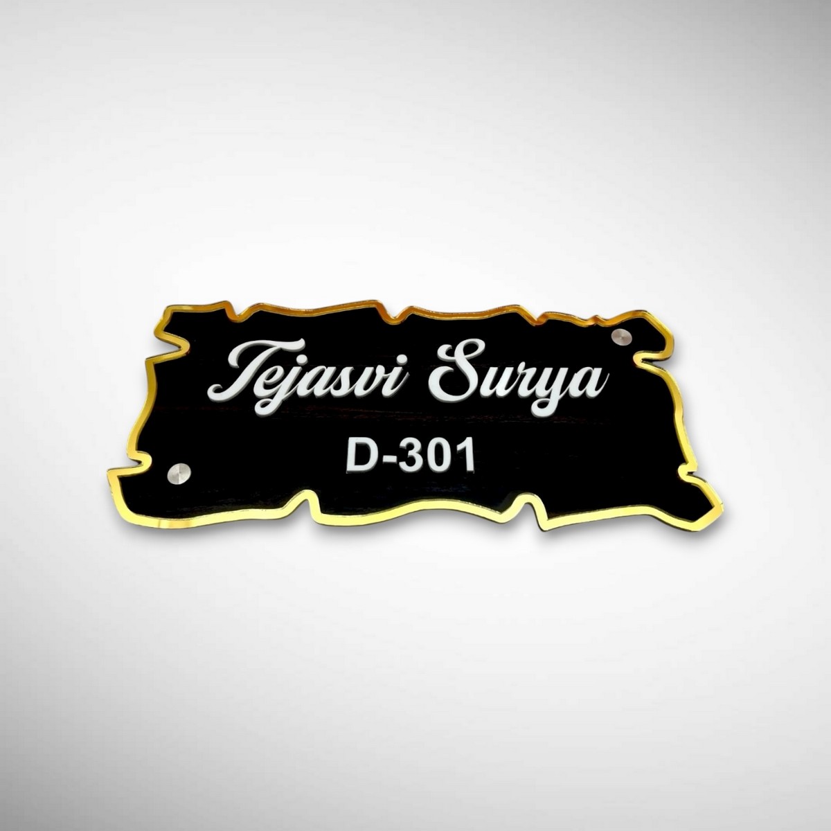 Upgrade your entrance with the elegance of our ACP-based nameplate with acrylic letters, exclusively handcrafted for those who love modern luxury with a classy finish. This Tejasvi Surya–themed designer nameplate blends durable ACP (Aluminum Composite Panel) with high-gloss acrylic letters, creating a stunning contrast that instantly enhances your home’s façade.