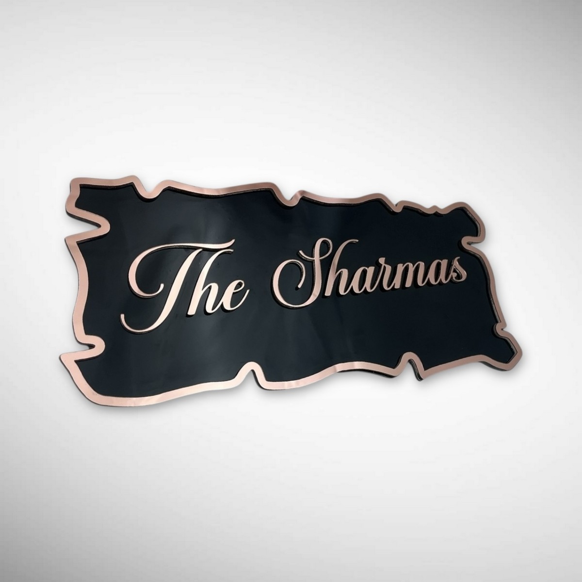 Welcome guests in style with our Black Acrylic Nameplate for Home – Sharma Family Edition ✨