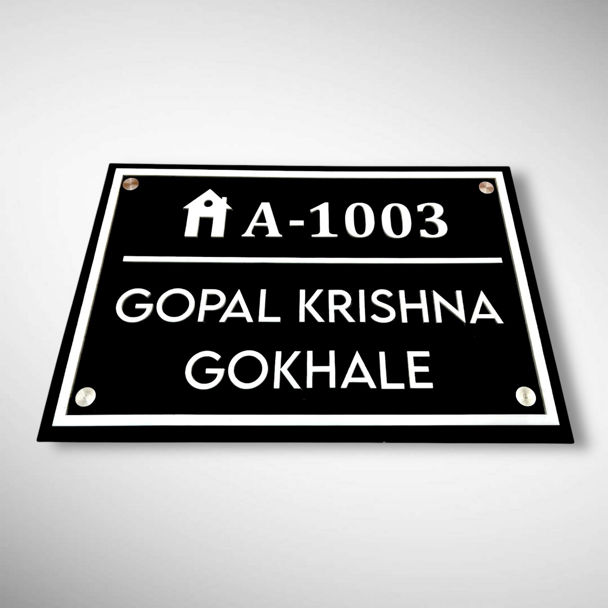 Presenting our Black ACP Base Nameplate with Acrylic Letters, customized with the name Gopal Krishna Gokhale—a perfect fusion of durability, luxury, and Indian craftsmanship.
