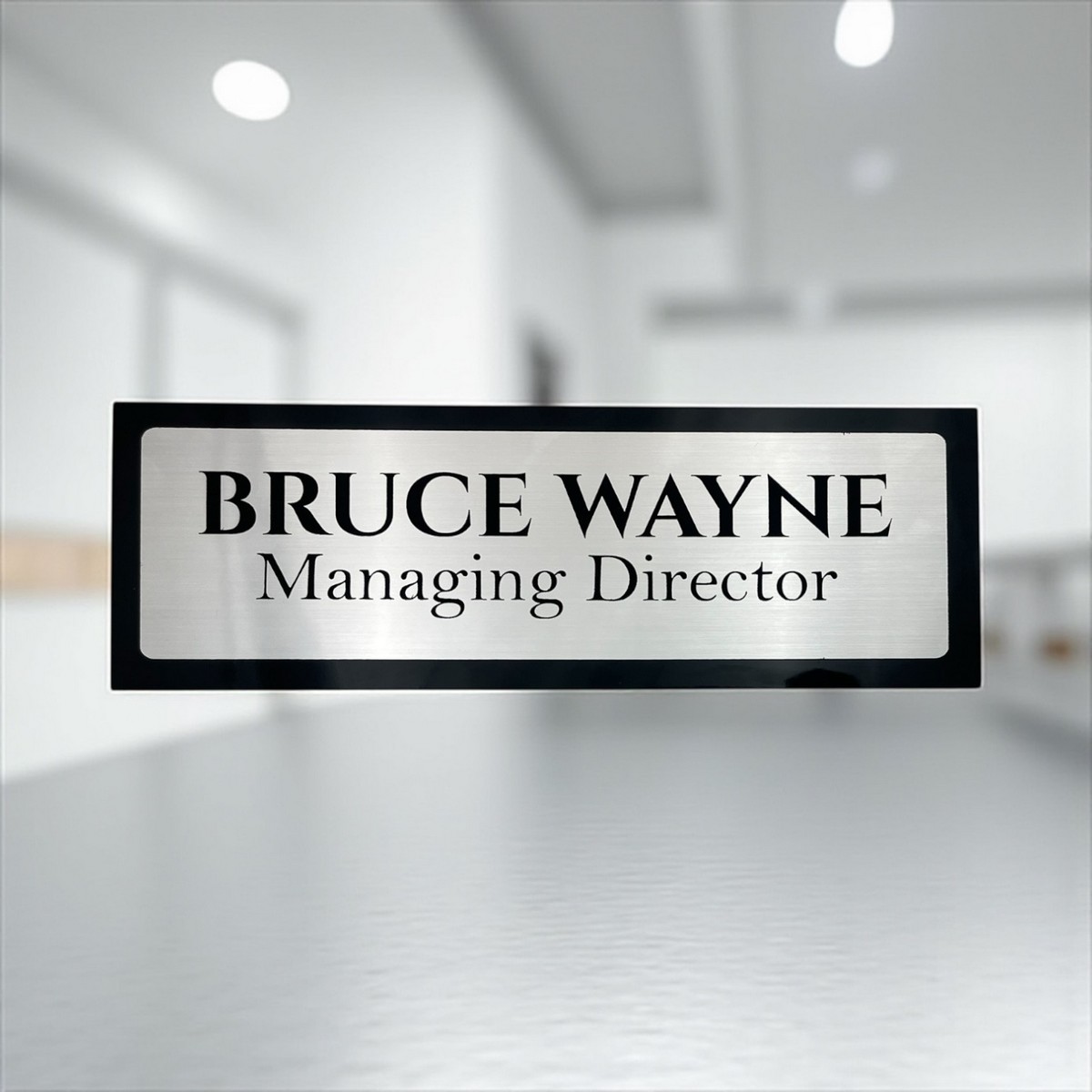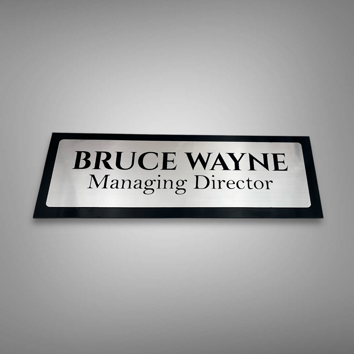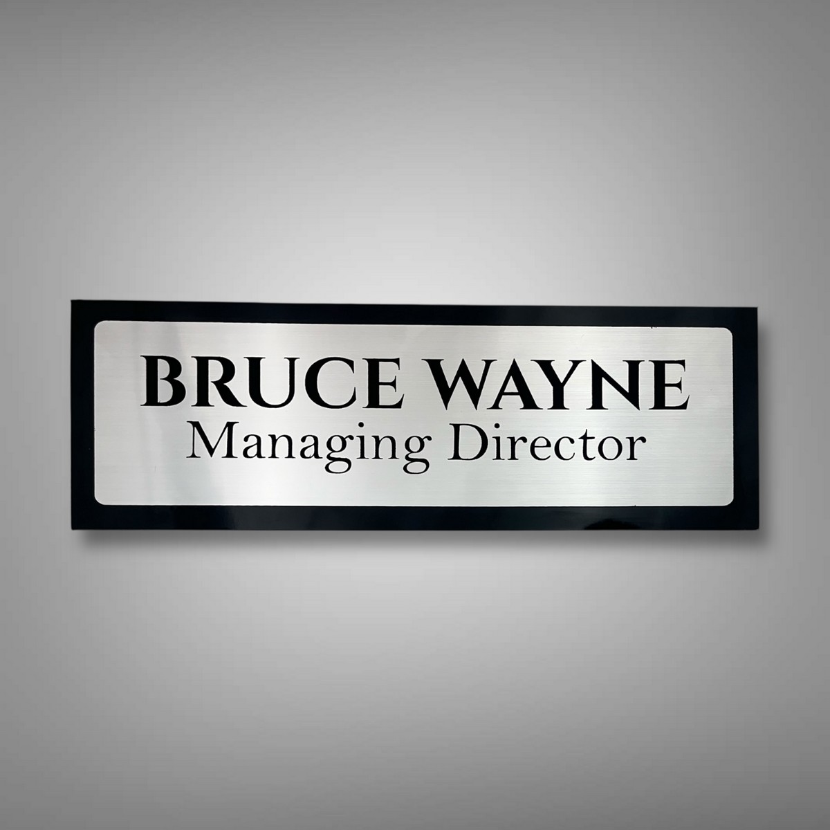 Elevate your entrance with the Black ACP-Based Acrylic Engraving Nameplate—Bruce Wayne Edition, exclusively handcrafted for a premium modern home feel ✨