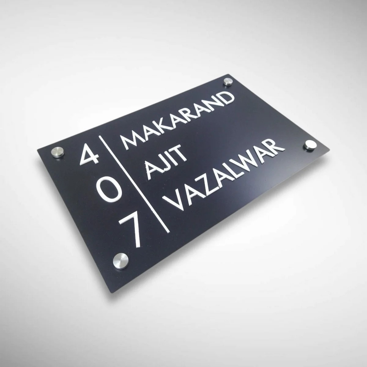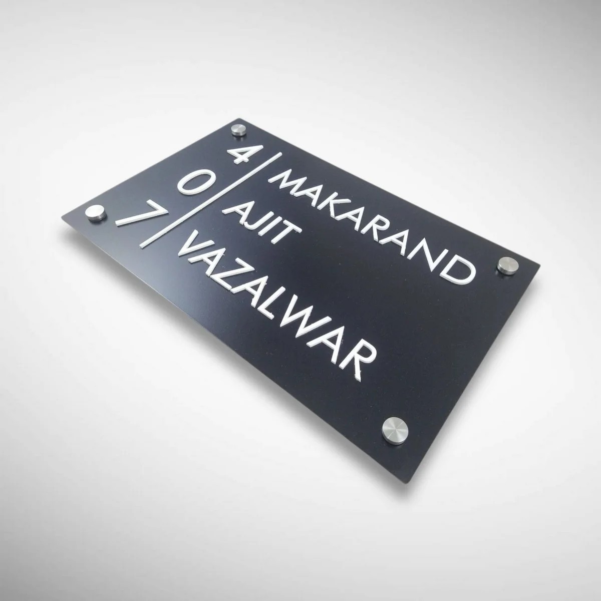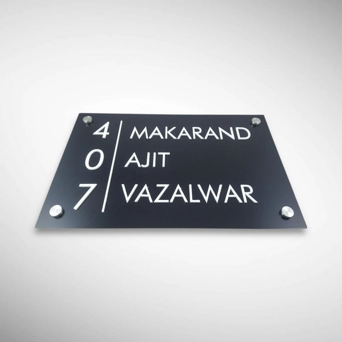 Crafted from high-quality premium acrylic, this nameplate features a rich black base that beautifully highlights the intricate tree motif, symbolizing growth, strength, and harmony. The sleek finish and contemporary design make it a perfect fit for apartments, villas, bungalows, offices, and modern Indian homes.