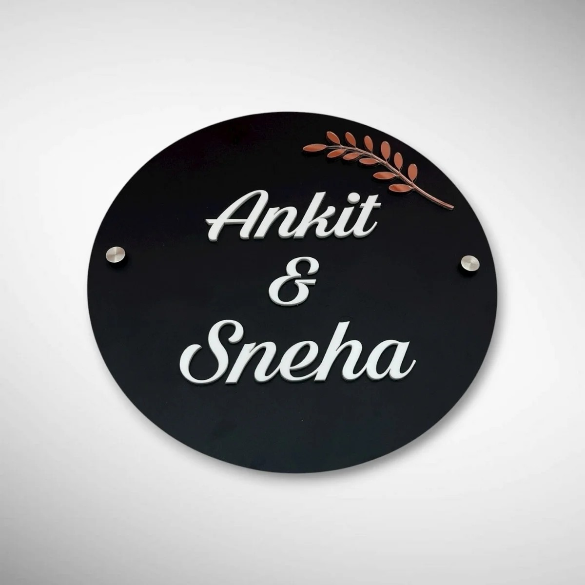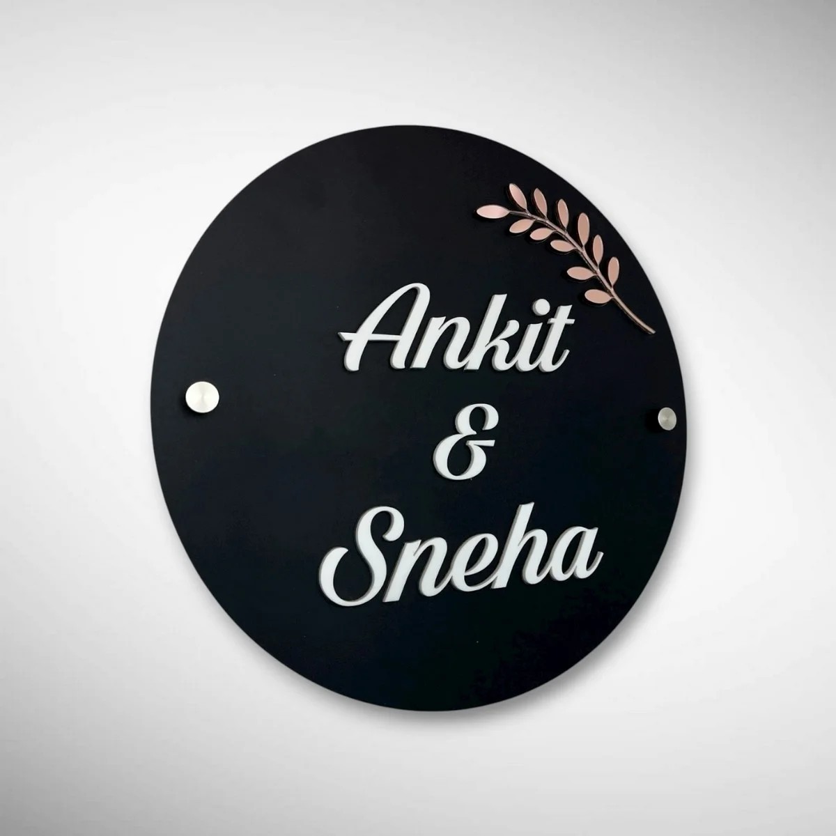 Give your home entrance a modern, classy touch with our Black Matt Acrylic Nameplate featuring acrylic raised letters, beautifully customized for Ankit & Sneha.