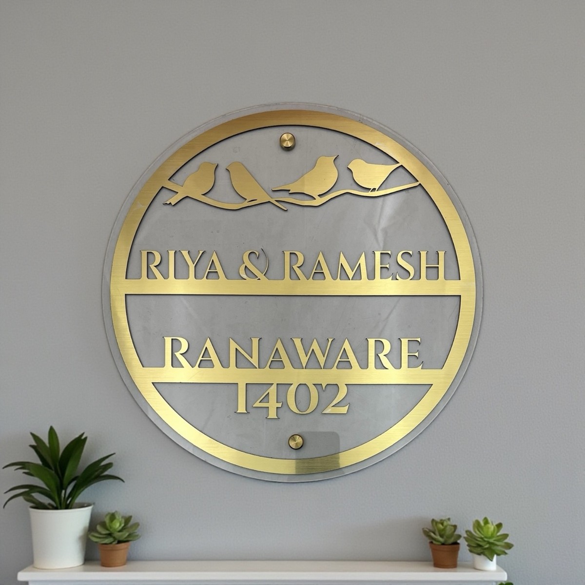 Crafted for modern Indian homes, this premium acrylic nameplate combines luxury aesthetics, long-lasting durability, and weather-resistant shine. The transparent acrylic base creates a floating effect, while the golden hairline letters add a rich metallic elegance that stands beautifully against any background.