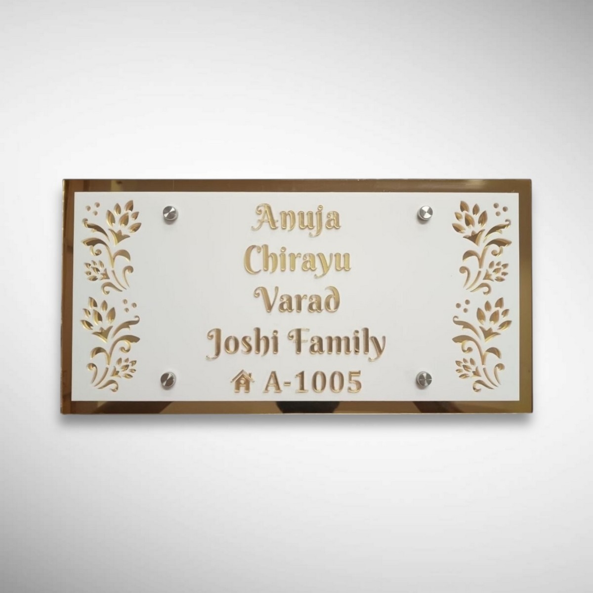 Shop for a Floral Pattern Acrylic Nameplate for the Joshi Family at Kalakruti India. Premium quality, elegant design & personalized home nameplate for stylish entrances.