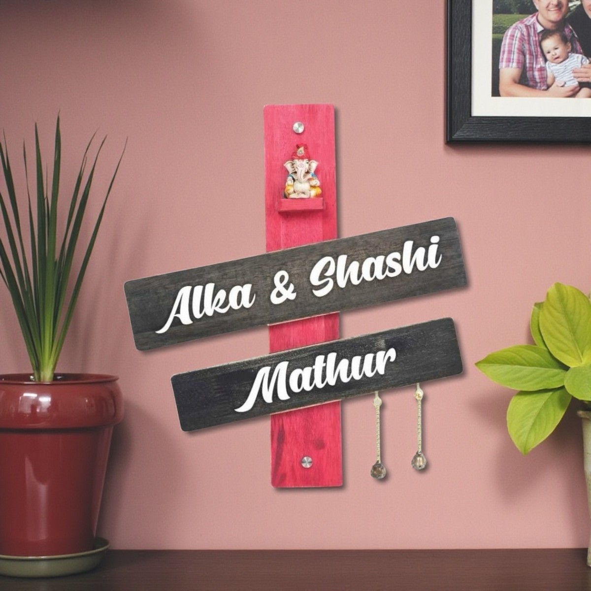Handcrafted stylish wooden nameplate for home entrance. Premium quality, personalized design, perfect for Indian homes. Shop now at Kalakruti India.