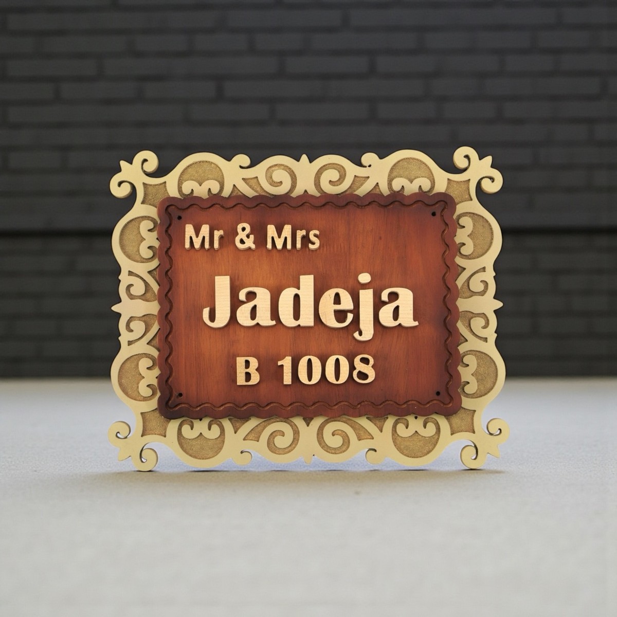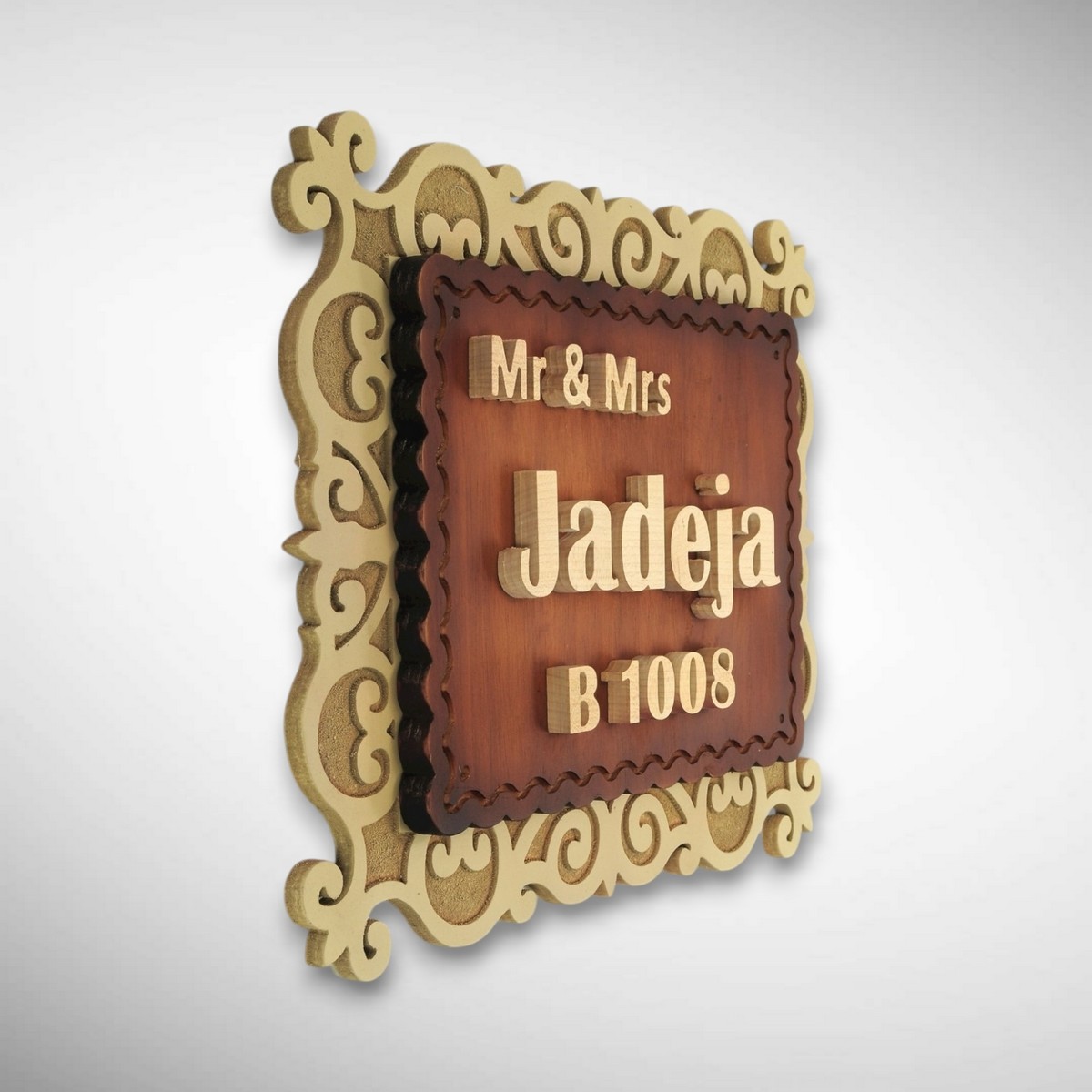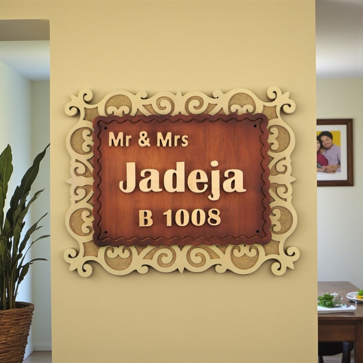 Designed for homeowners who appreciate authentic Indian artistry, the Jadeja wooden nameplate is perfect for villas, apartments, bungalows, and traditional homes. The rich wooden finish enhances durability while maintaining a classy, earthy look that complements both modern and ethnic décor styles.