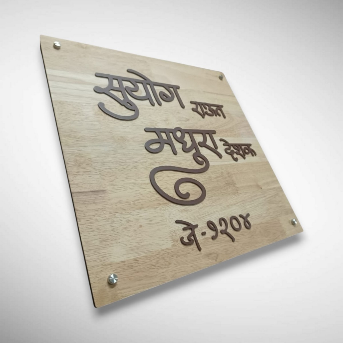 Add a warm, artistic touch to your home entrance with the Handcrafted Wooden Stylish Nameplate – Suyog Madhura, thoughtfully designed to reflect elegance, tradition, and modern craftsmanship. Made from premium-quality wood, this nameplate showcases fine detailing, smooth finishing, and a timeless aesthetic that beautifully complements Indian homes, apartments, and villas.