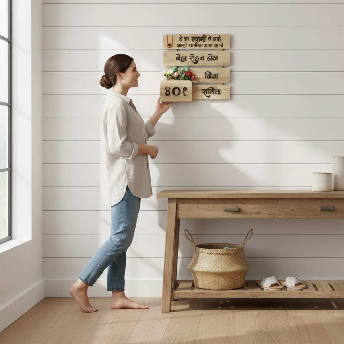 Whether you’re moving into a new home, renovating your space, or searching for a thoughtful housewarming gift, this wooden floral nameplate is a beautiful choice that speaks elegance, warmth, and craftsmanship.