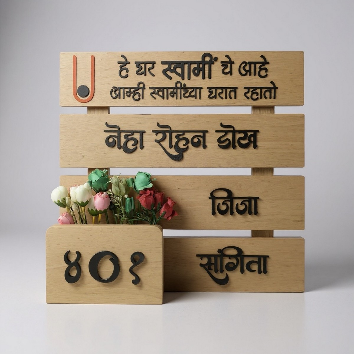 Ideal for apartments, villas, bungalows, and traditional Indian homes, this nameplate blends effortlessly with modern, classic, and ethnic décor themes. Finished with precision and love, it is weather-resistant, long-lasting, and easy to maintain—making it perfect for both indoor and covered outdoor use.