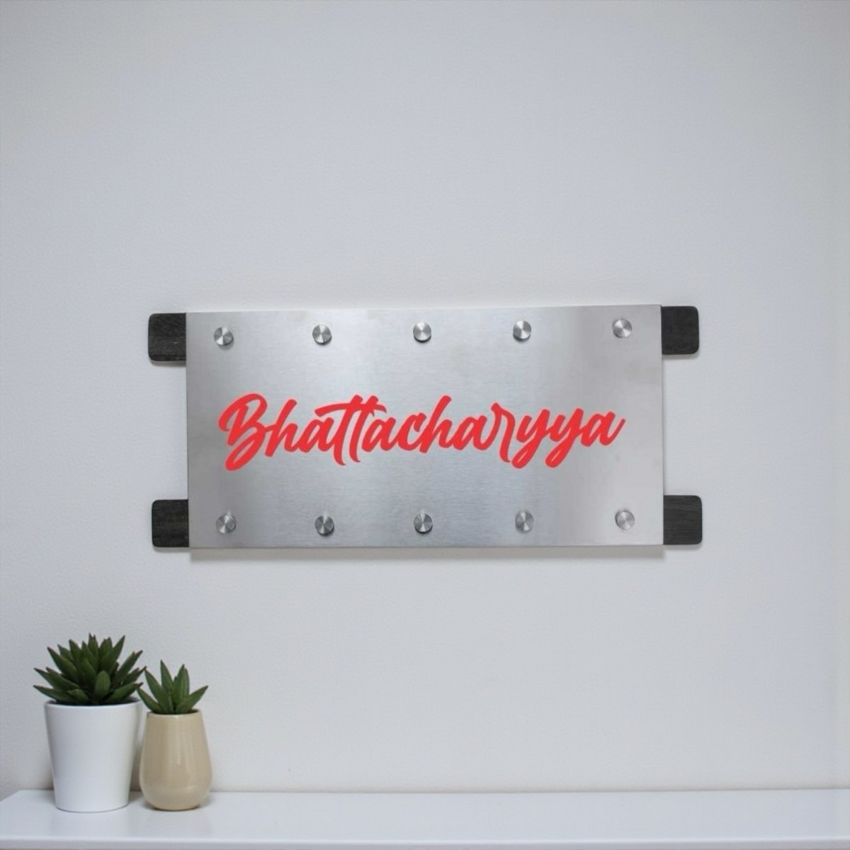 Perfect for apartments, villas, bungalows, and office entrances, this nameplate reflects sophistication while standing strong against weather conditions. The brushed metal texture adds a subtle sheen that elevates your exterior décor without being overpowering.