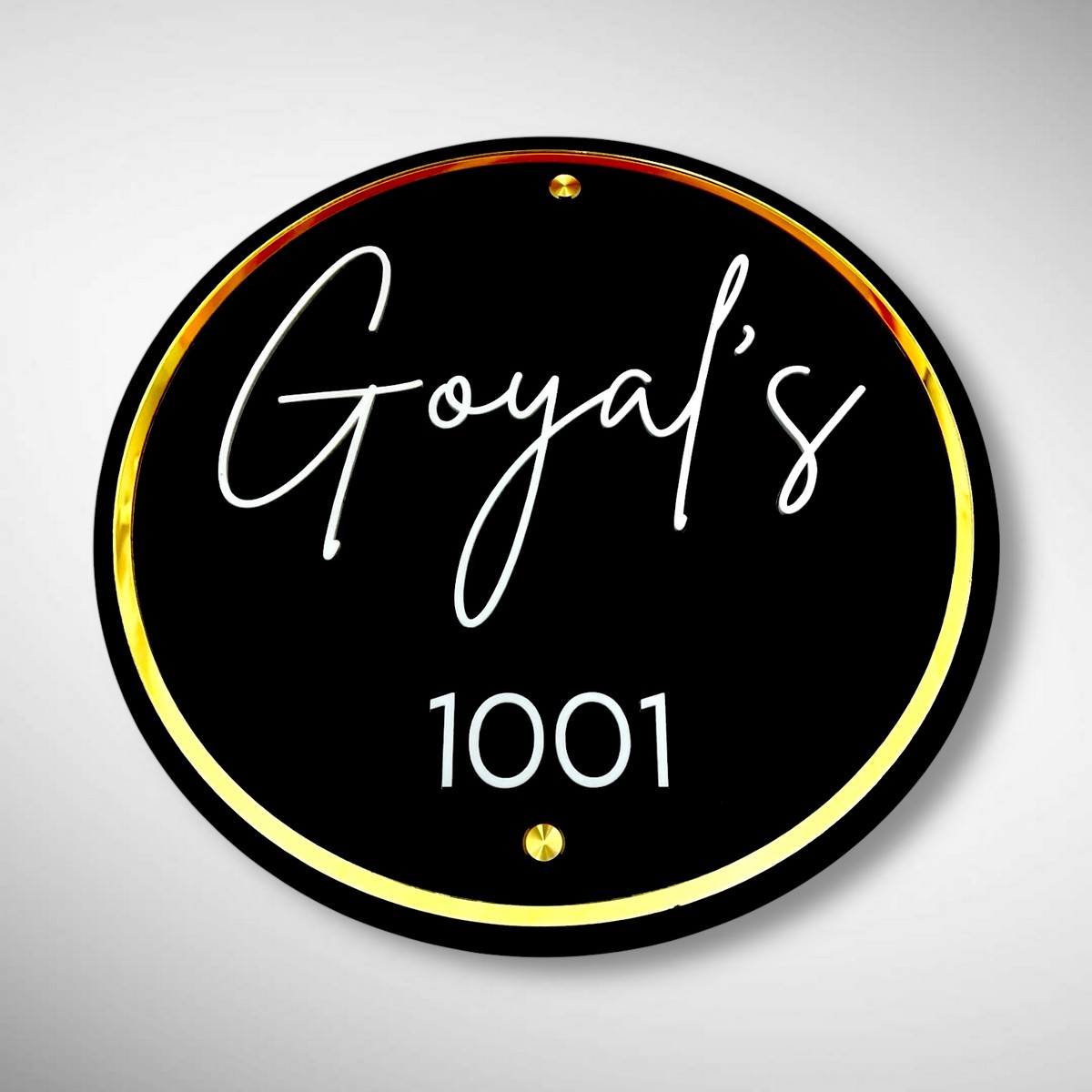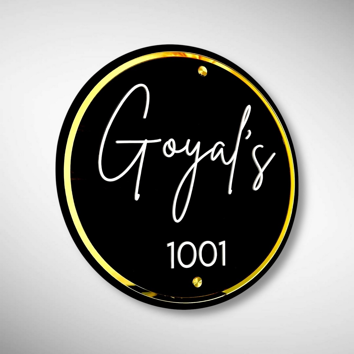 Elevate your entrance with the timeless elegance of our Black ACP-Based Nameplate with Premium Acrylic Letters—Goyal’s Edition ✨