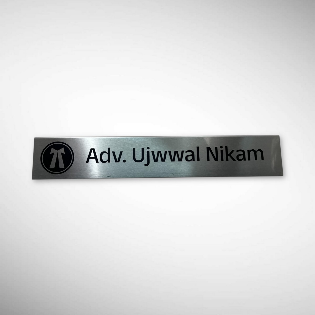 Crafted with high-quality metal, the surface offers a smooth, matte texture that resists fingerprints and maintains its premium look over time. The engraved text ensures long-lasting clarity, making it ideal for lawyers, advocates, consultants, executives, and senior professionals.