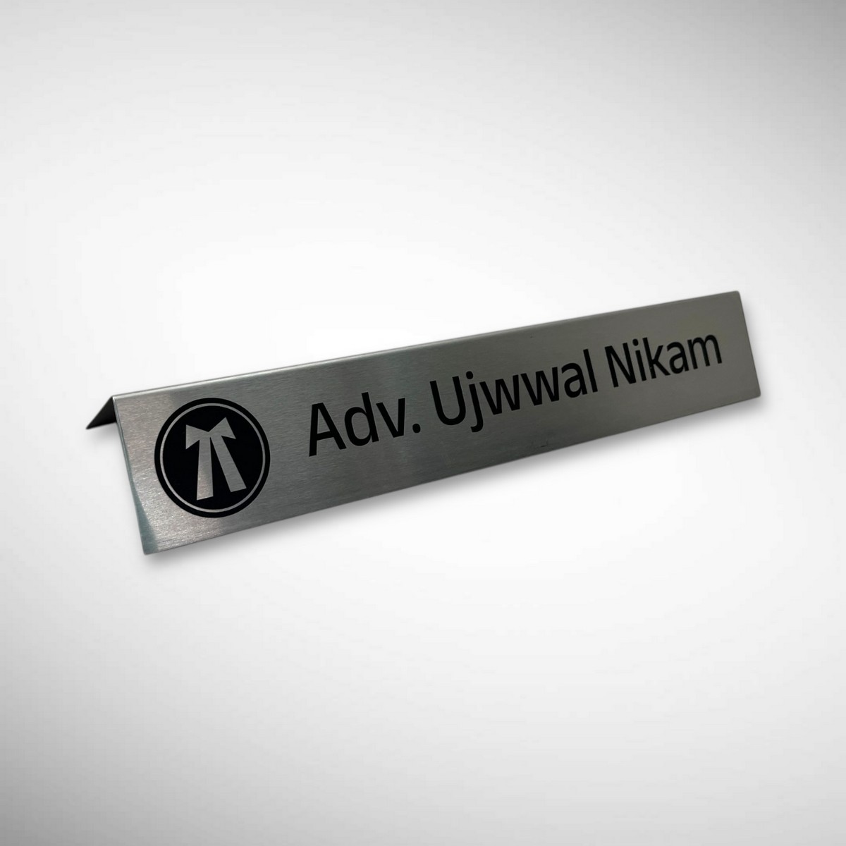 Make a powerful first impression with this Premium Brushed Metal Desk Nameplate, designed for professionals who value elegance, authority, and refined aesthetics. Featuring a sleek brushed metal finish and precision-engraved lettering, this nameplate adds a sophisticated touch to any office, courtroom chamber, or corporate workspace.