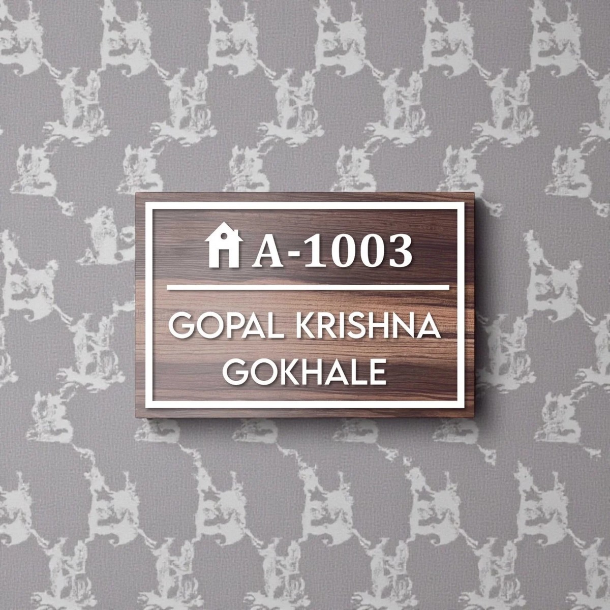 Blending natural wooden texture, a durable ACP base, and premium acrylic raised letters, this nameplate brings a perfect balance of elegance and modern style to your home.