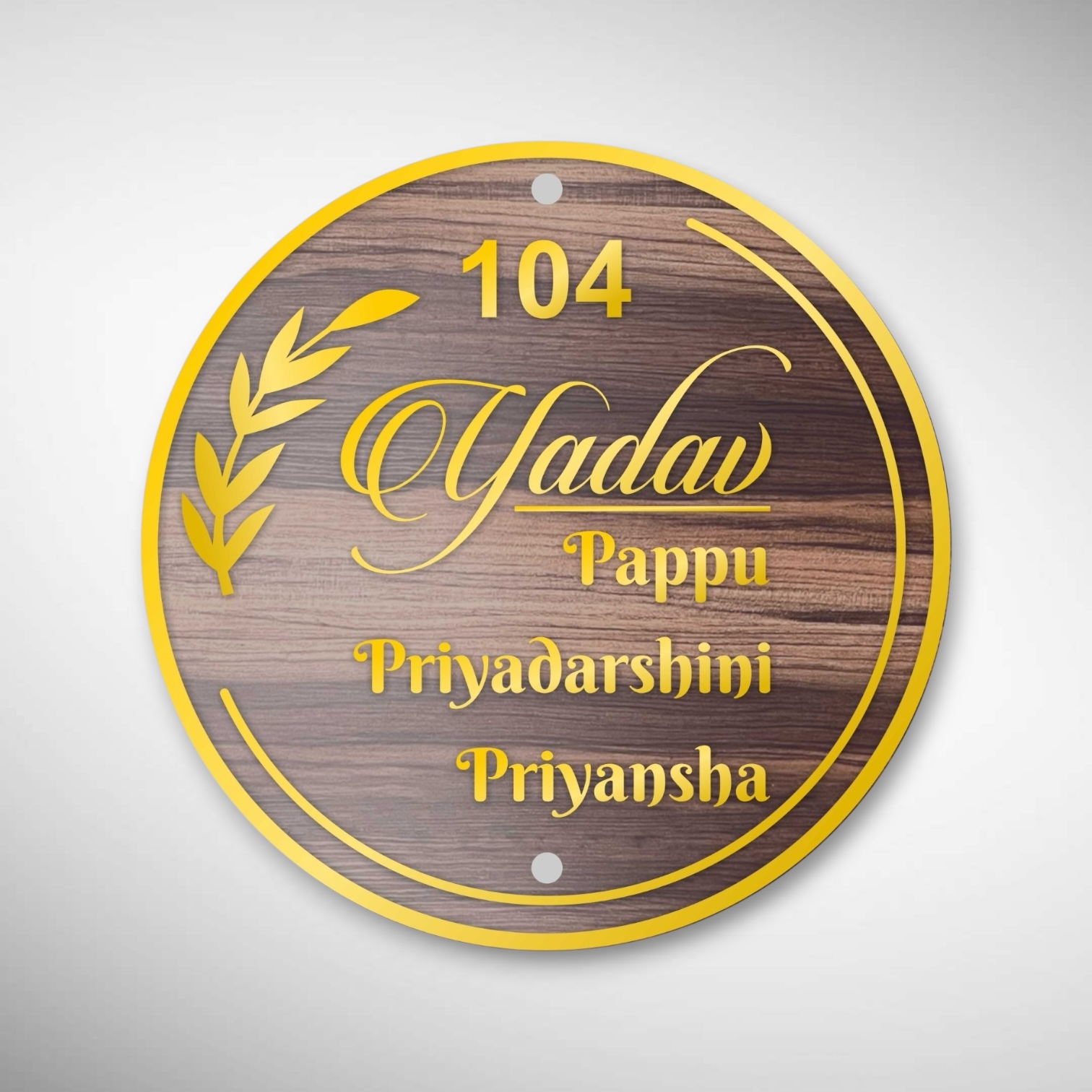 This luxurious designer nameplate is crafted using a high-quality ACP wood base paired with elegant raised acrylic letters to create a premium, modern, and bold identity for your home entrance.