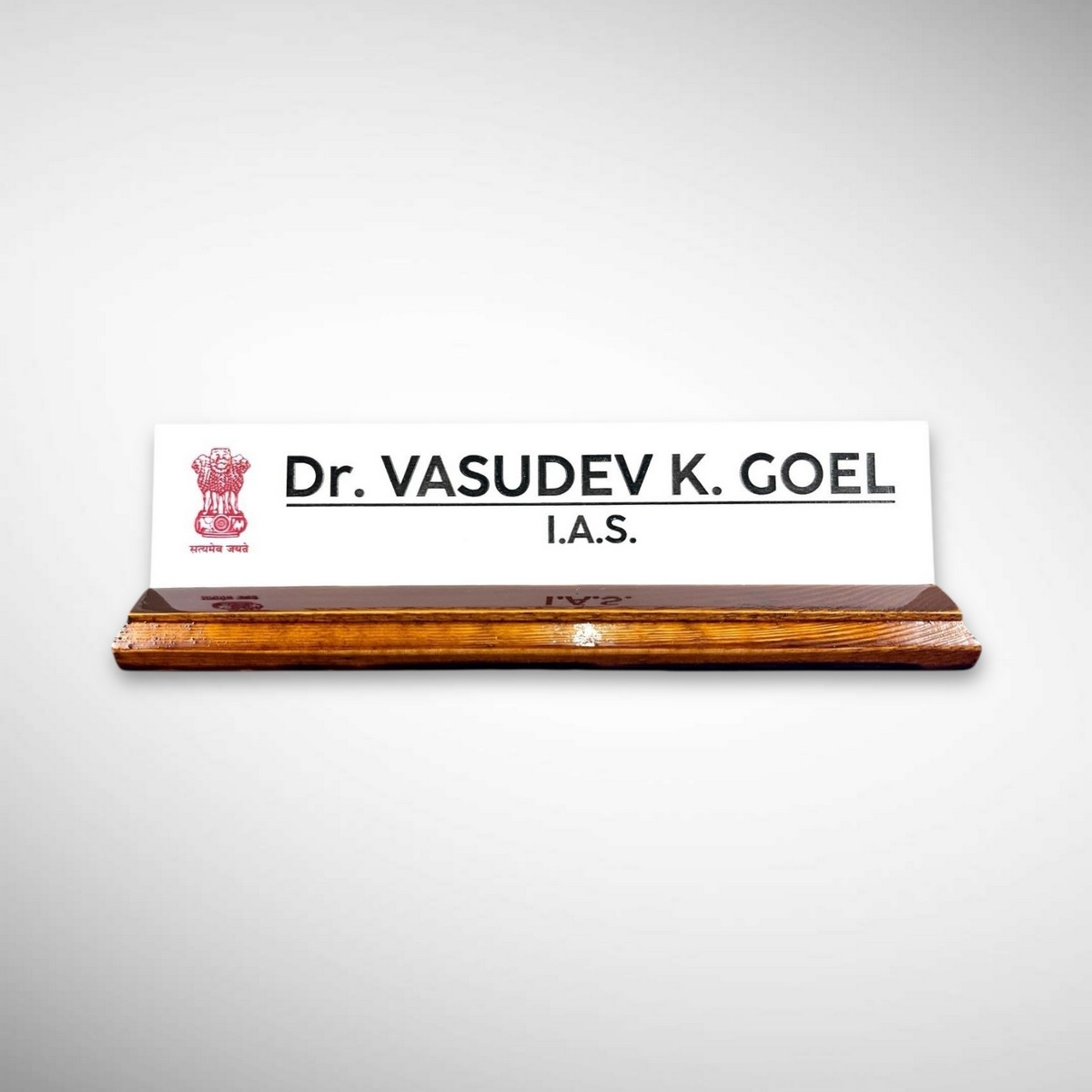 Add a touch of elegance and professionalism to your workspace with our Premium Wooden & Acrylic Desk Nameplate for Dr. Vasudev Goel. Crafted with a beautifully polished wooden base and a sleek, high-quality acrylic name panel, this desk nameplate reflects class, authority, and sophistication.