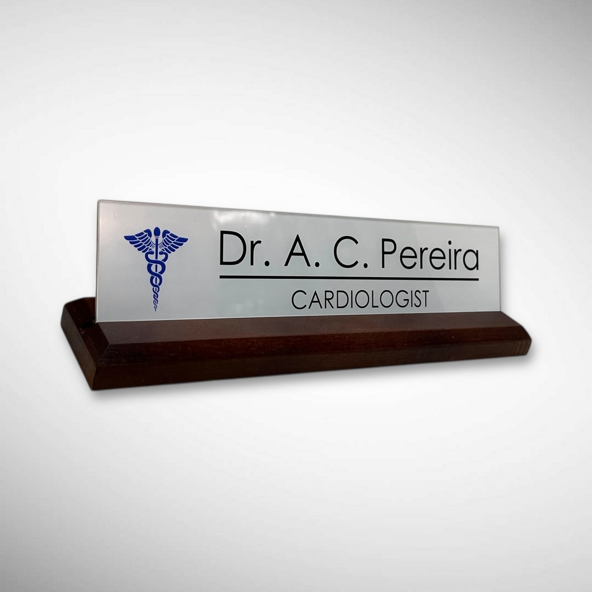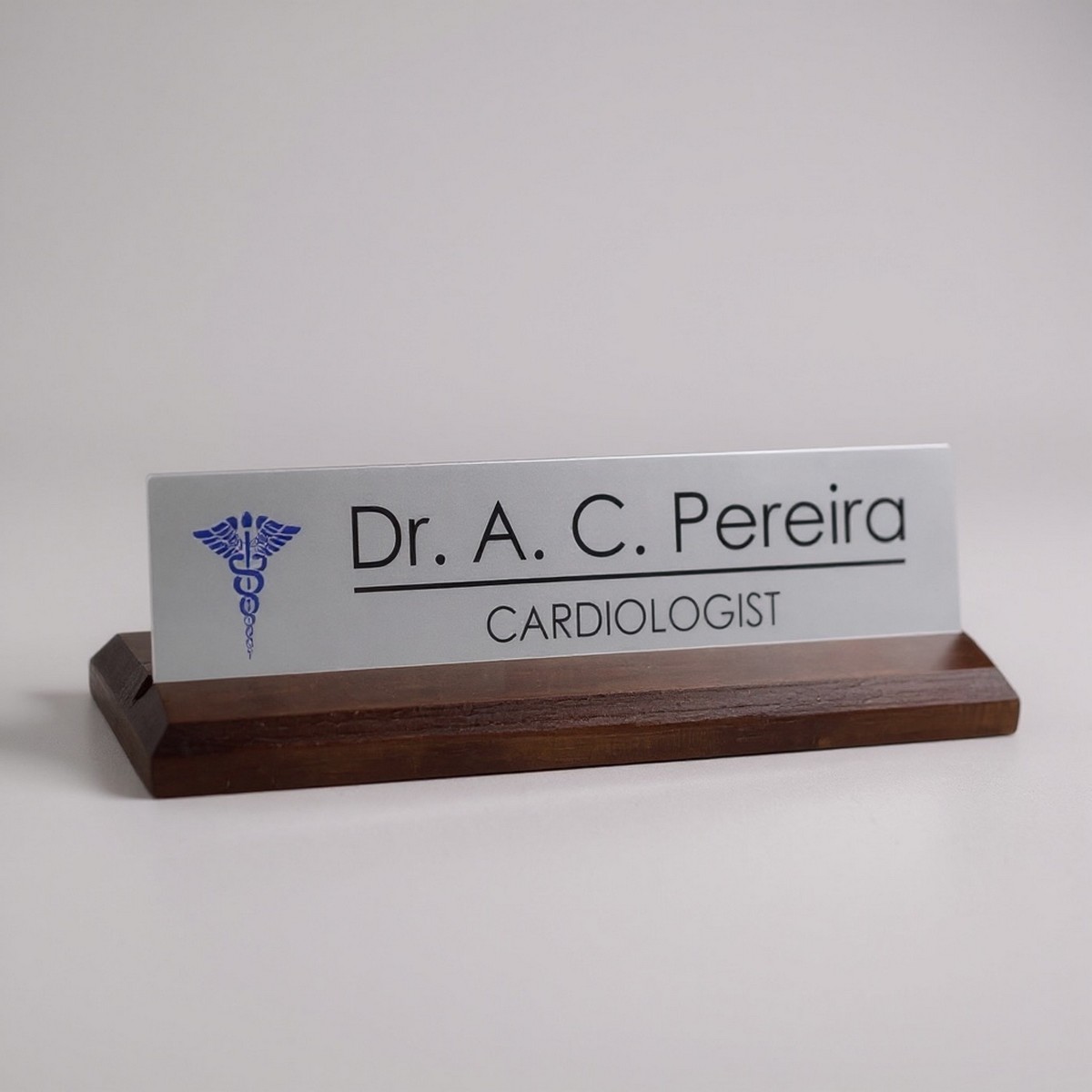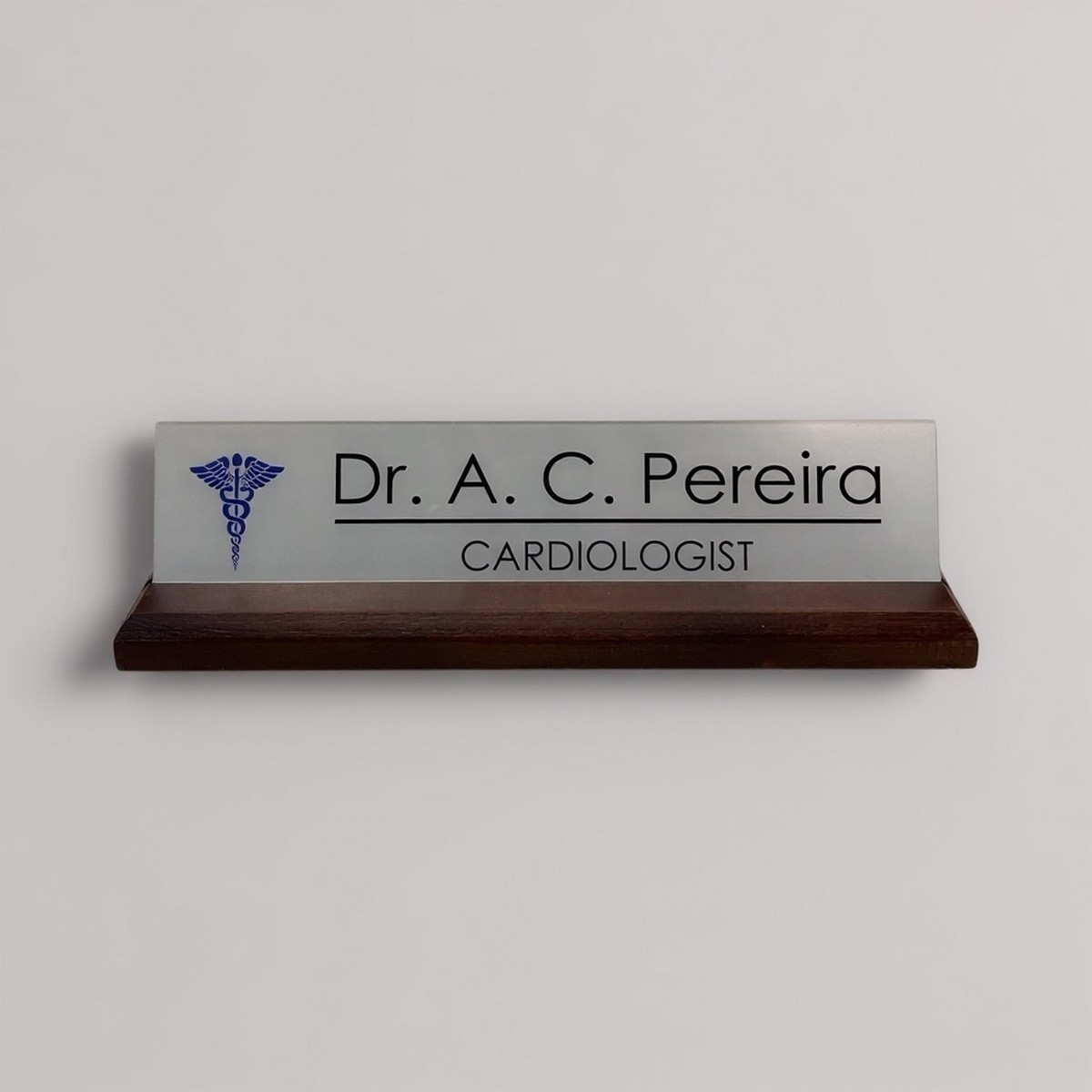 Add a touch of elegance and professionalism to your workspace with this premium desk nameplate featuring a polished wooden base and a sleek acrylic top. Thoughtfully crafted for modern offices, clinics, and corporate cabins, this nameplate reflects class, authority, and refined taste.