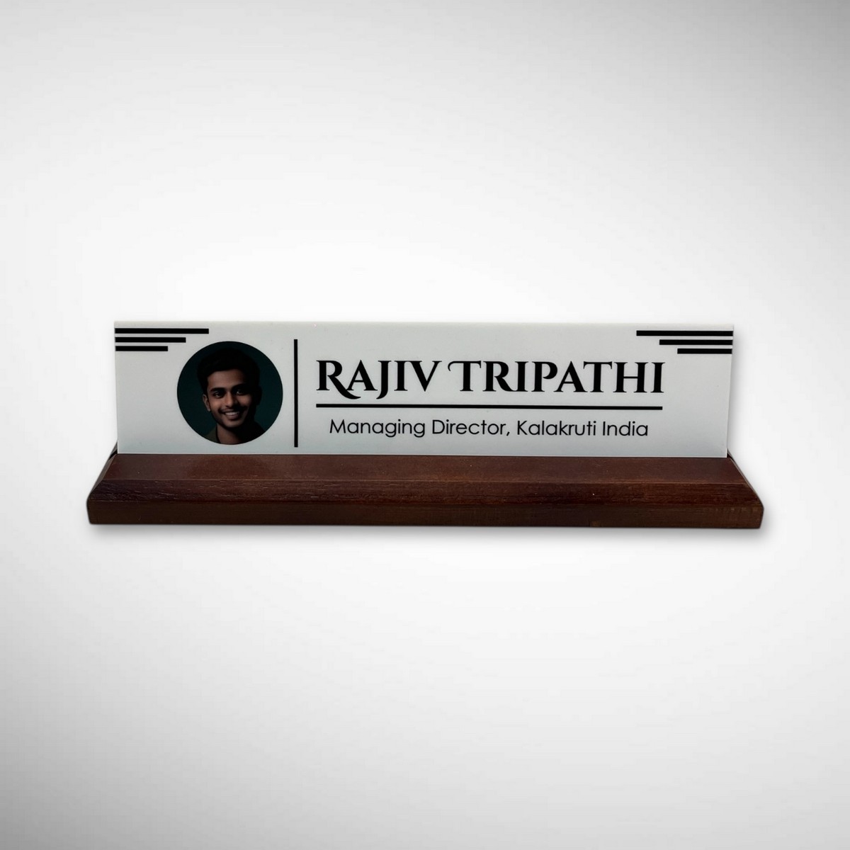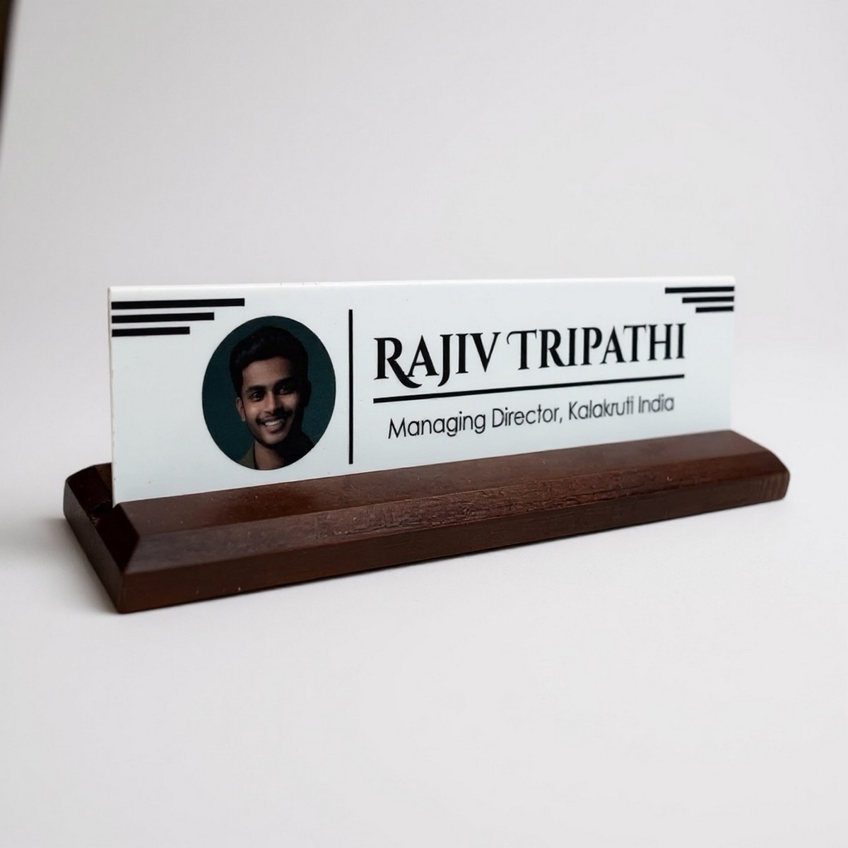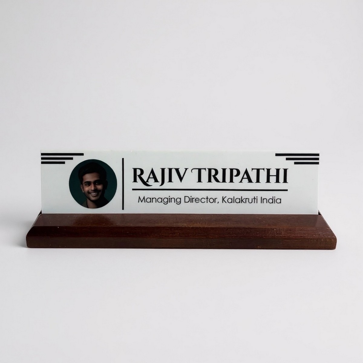 Premium Wooden Base Acrylic Desk Nameplate | Rajiv Tripathi