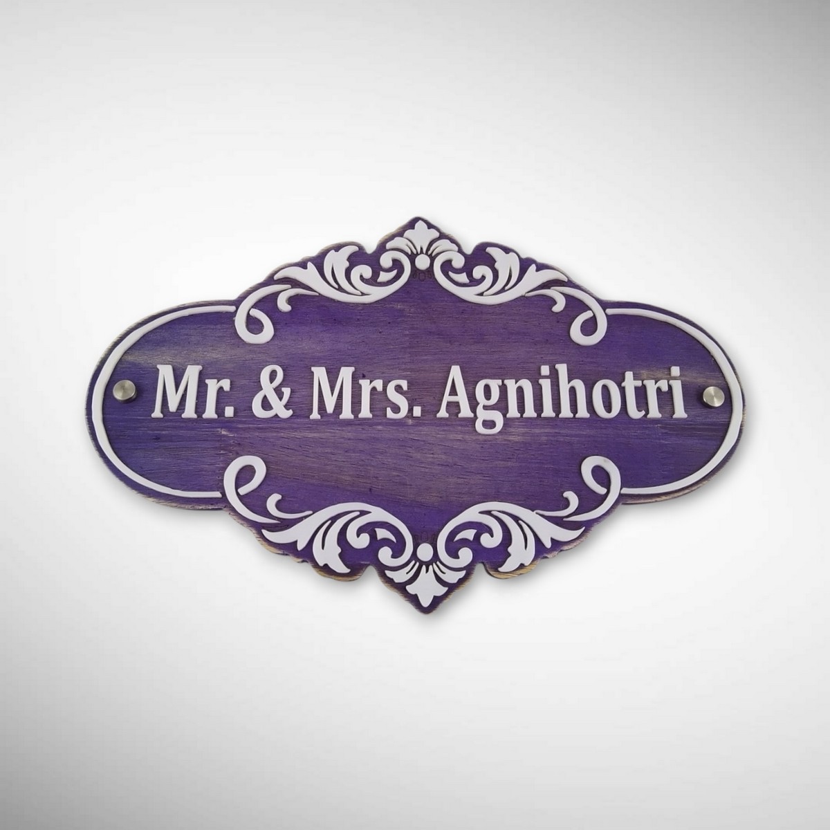 Add a touch of royal charm and handcrafted elegance to your home entrance with the Purple Rubber Wood Brown Polish Nameplate by Kalakruti India. Crafted from premium-quality rubberwood, this nameplate showcases a rich brown polish base beautifully contrasted with regal purple accents, creating a striking yet sophisticated look for modern and traditional Indian homes alike.