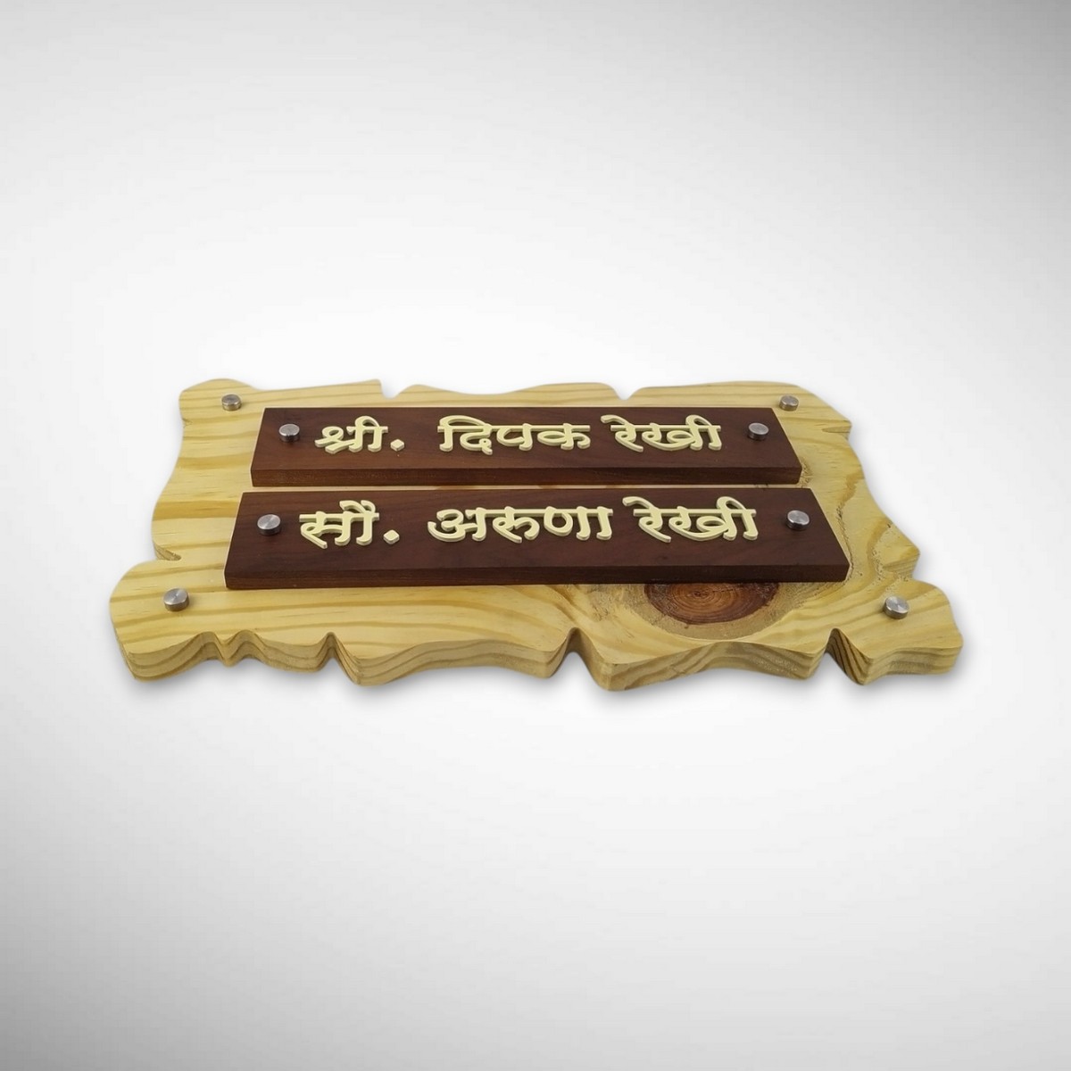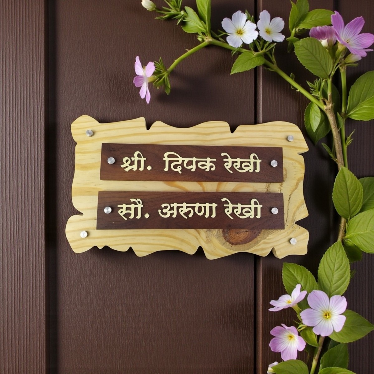 Each layer is carefully cut, polished, and assembled to create depth, texture, and a rich visual appeal. The natural wooden finish enhances the charm of your home while offering durability and long-lasting beauty. Ideal for main doors, apartments, villas, or offices, this handcrafted wooden nameplate reflects personality, pride, and premium taste.