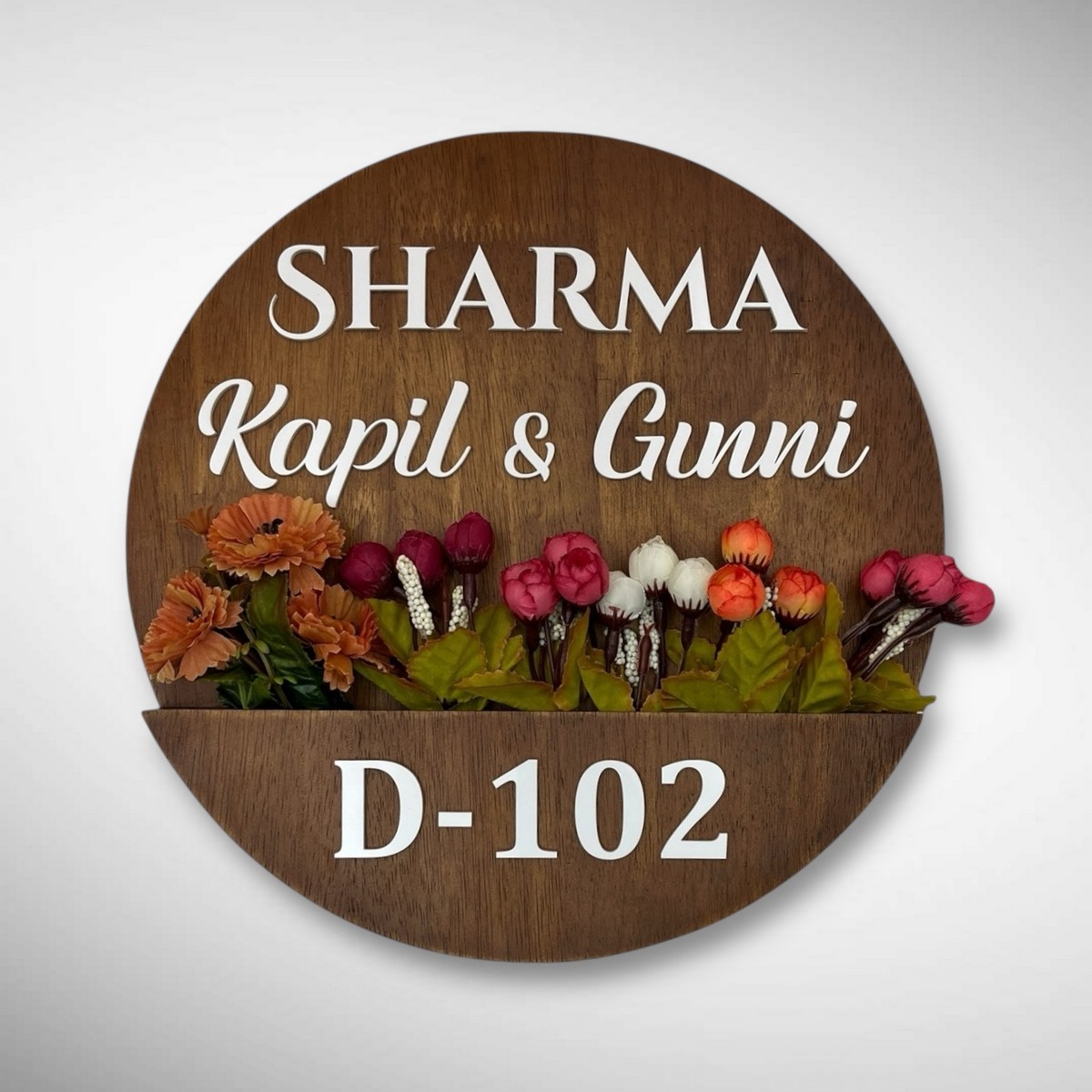 Add a touch of natural elegance and warmth to your home entrance with this Round-Shaped Rubber Wood Brown Polish Planter Nameplate, thoughtfully designed for modern Indian homes. 🌿✨ Crafted from high-quality rubberwood, this nameplate features a rich brown polish that highlights the natural wood grain, creating a timeless and sophisticated look.