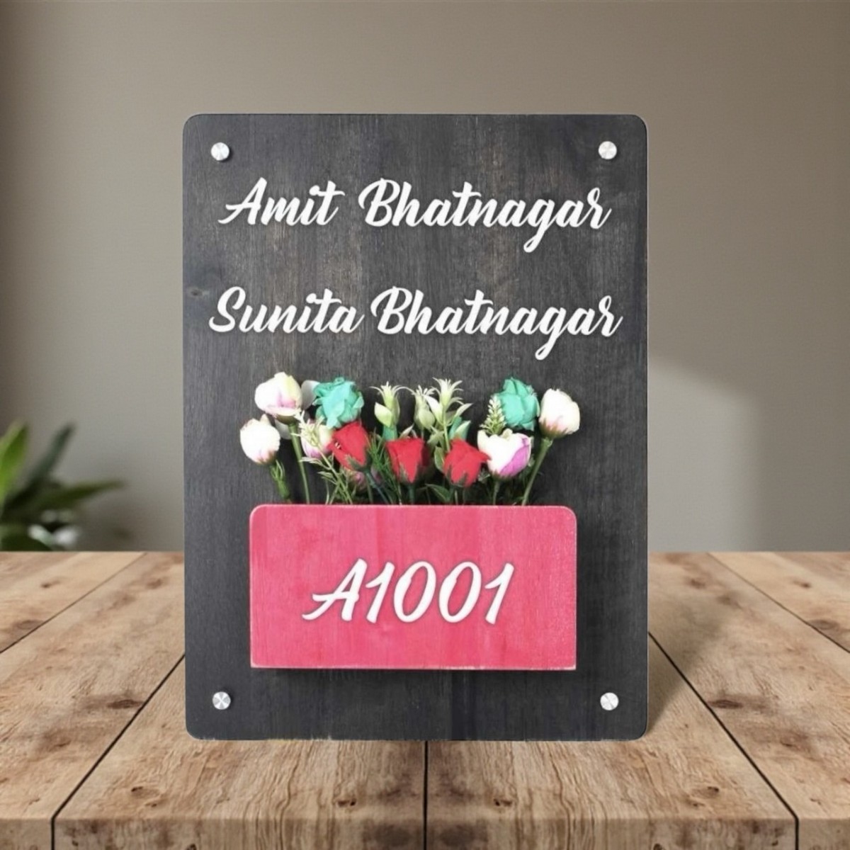 Designed with a built-in planter space, this wooden nameplate allows you to decorate your entrance with fresh or artificial plants, instantly elevating your home’s curb appeal. The smooth brown polish highlights the natural wood grain, giving the nameplate a premium and timeless look.