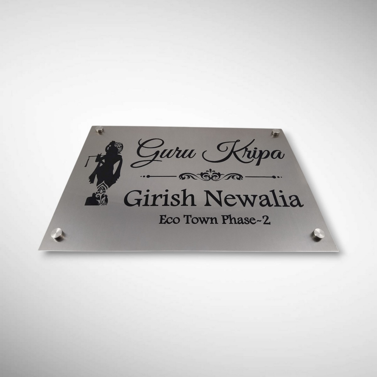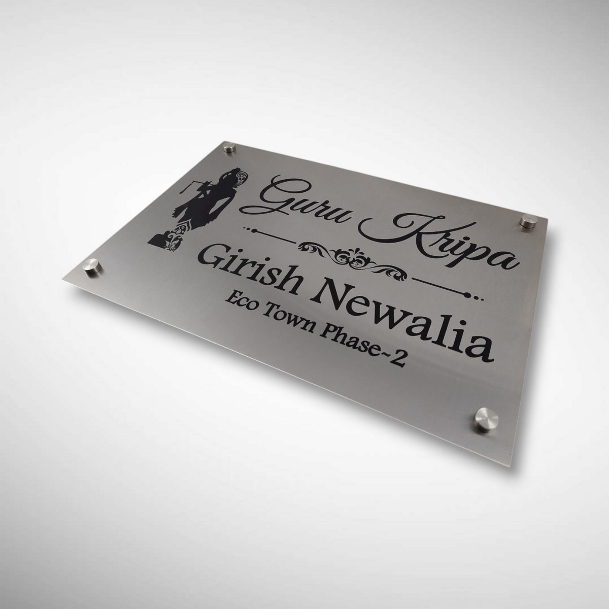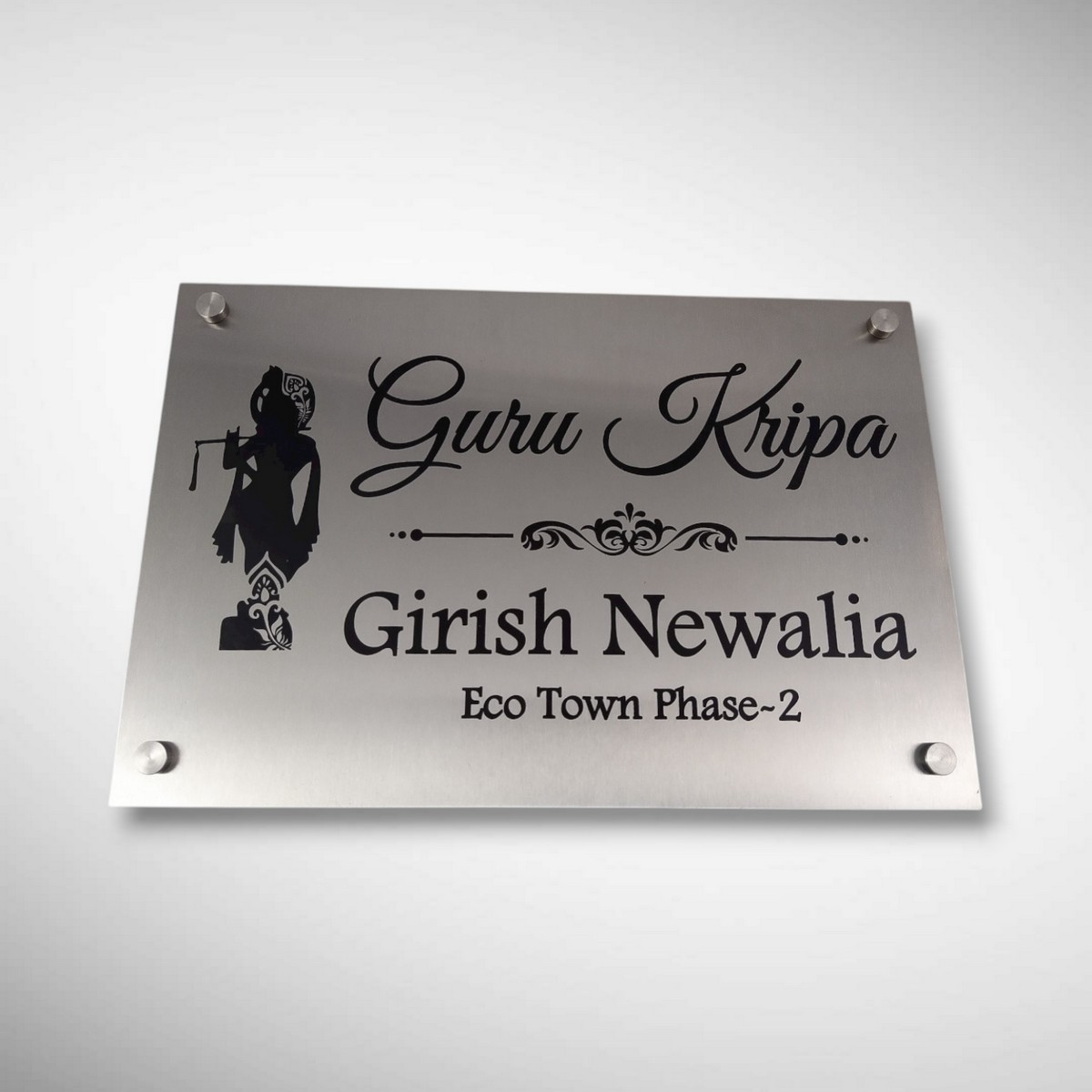 Bring divine blessings and timeless elegance to your home entrance with our Stainless Steel “Guru Kripa” Nameplate — a perfect blend of spirituality, durability, and modern design. Crafted with high-grade stainless steel, this nameplate is designed to elevate your home’s first impression while symbolizing positivity, grace, and protection.