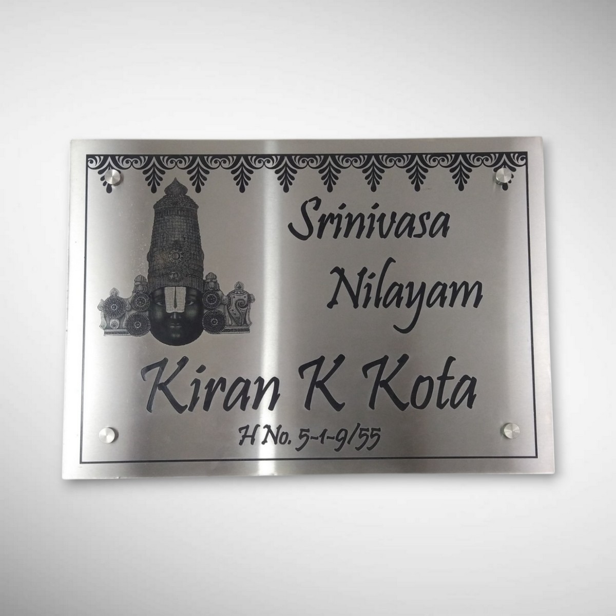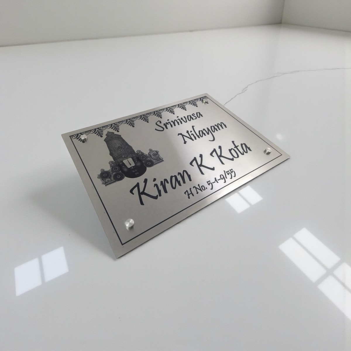 Its sleek metallic finish adds a rich and classy look to your main door, apartment entrance, bungalow gate, or pooja space. Easy to install and low on maintenance, this stainless steel nameplate is also a thoughtful gift for housewarming, griha pravesh, weddings, or festive occasions.
