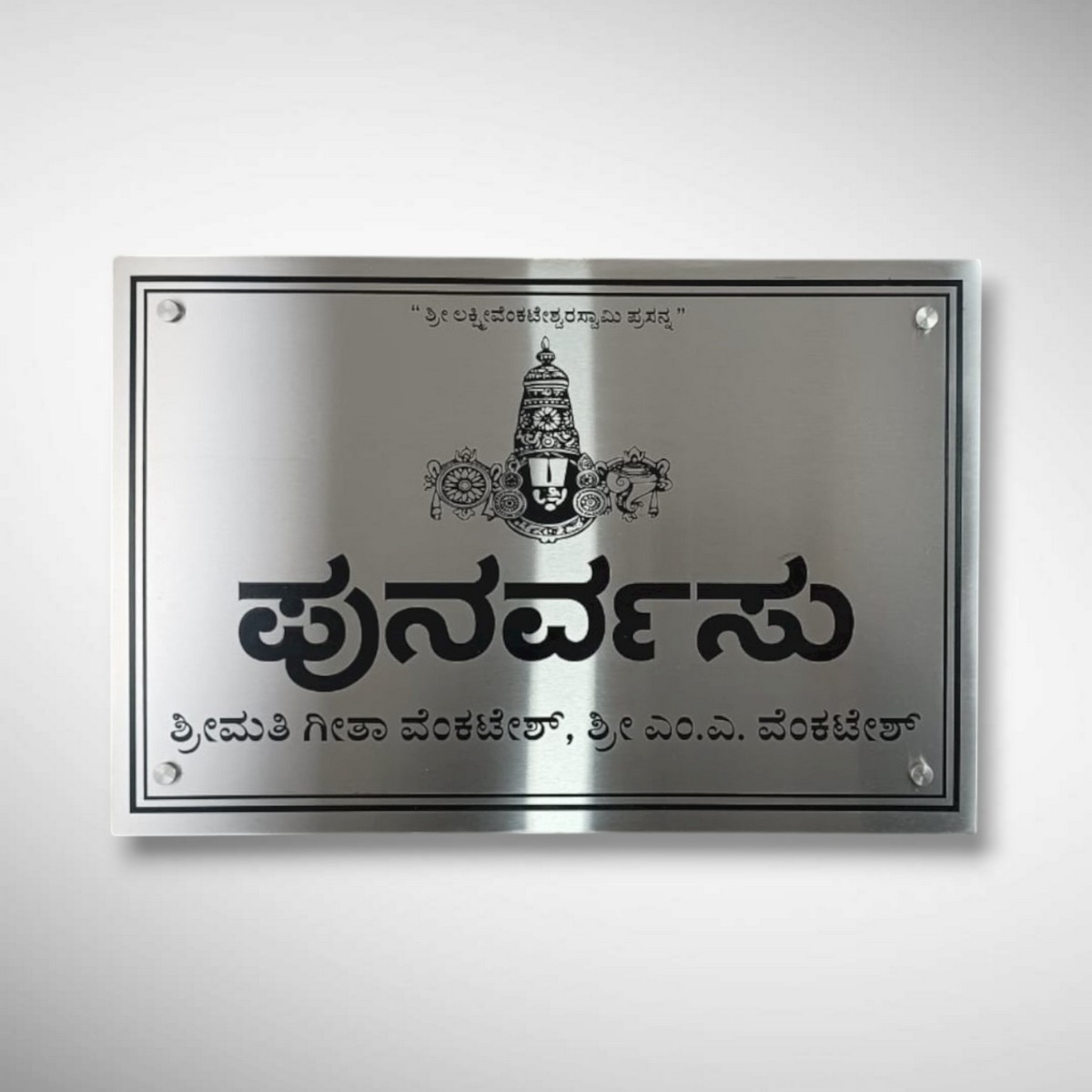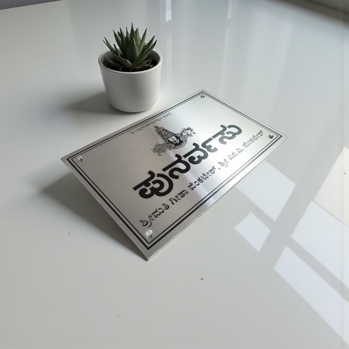 Whether it’s a home entrance, apartment door, villa gate, or office space, this Telugu nameplate reflects your roots while maintaining a contemporary aesthetic. Fully customizable in terms of name, font size, color, and layout, it’s a timeless piece that makes your address instantly recognizable and culturally rich.