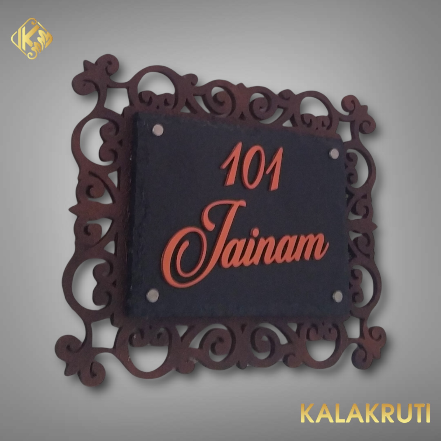 These Signs have 12mm MDF base design with 18mm Natural stone with 8mm Acrylic copper paint Letters. All Designer Name Plates come with necessary screws and fittings.