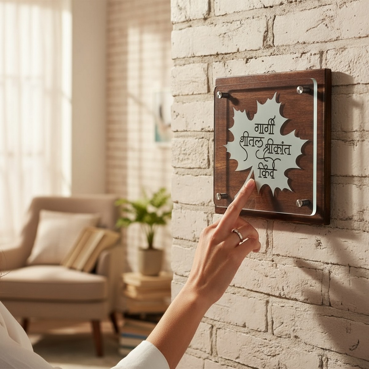 Add a graceful touch of nature to your home entrance with our Stylish Maple Leaf Theme Nameplate—Kirve, where artistic elegance meets modern craftsmanship 🍁✨. Inspired by the timeless beauty of maple leaves, this designer nameplate symbolizes warmth, harmony, and refined taste—perfect for contemporary Indian homes.
