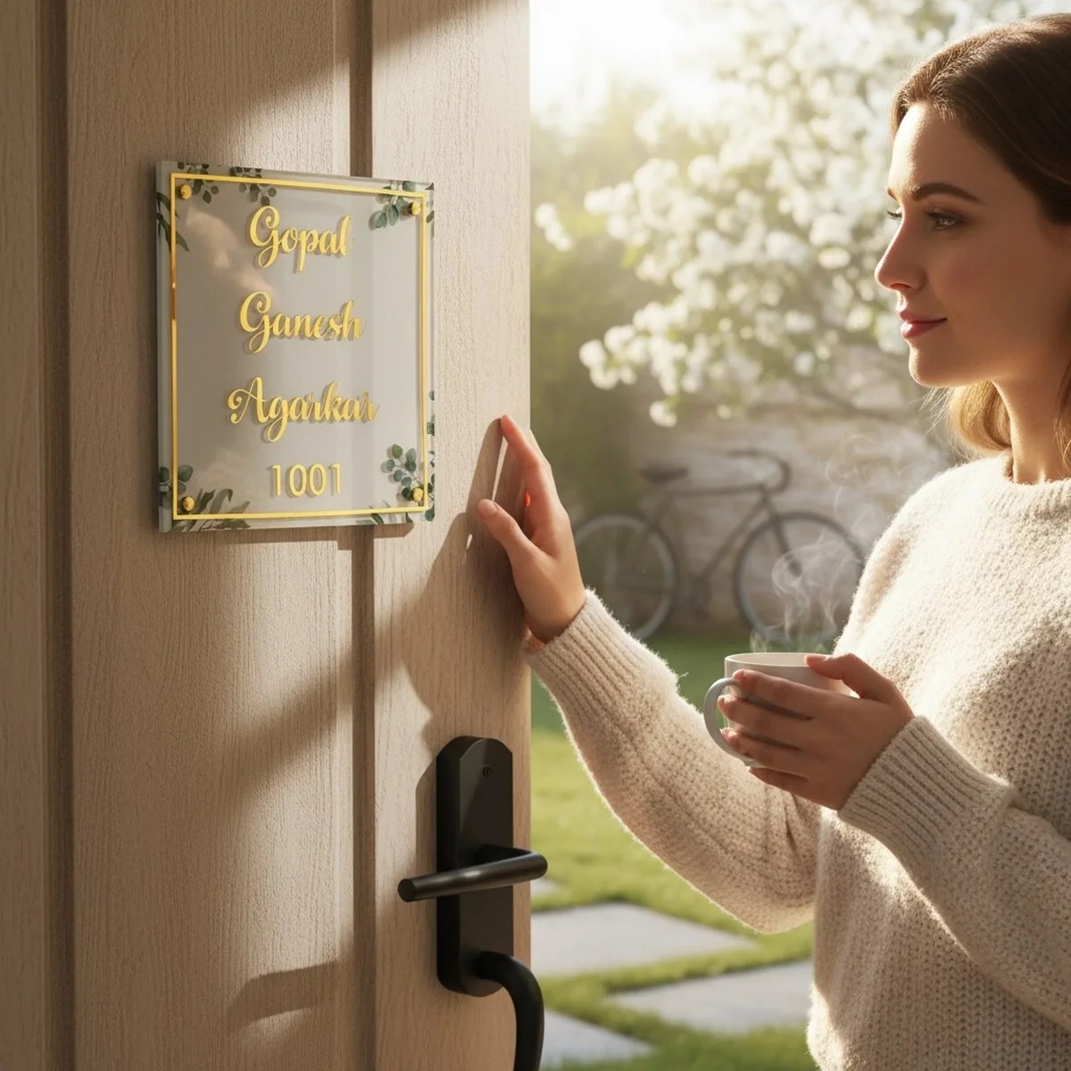 nameplate A perfect fusion of durability and elegance, this personalized house nameplate is crafted to last. The UV printing ensures fade-proof, scratch-resistant graphics, while ACP (Aluminium Composite Panel) provides weatherproof strength for years of outdoor use.