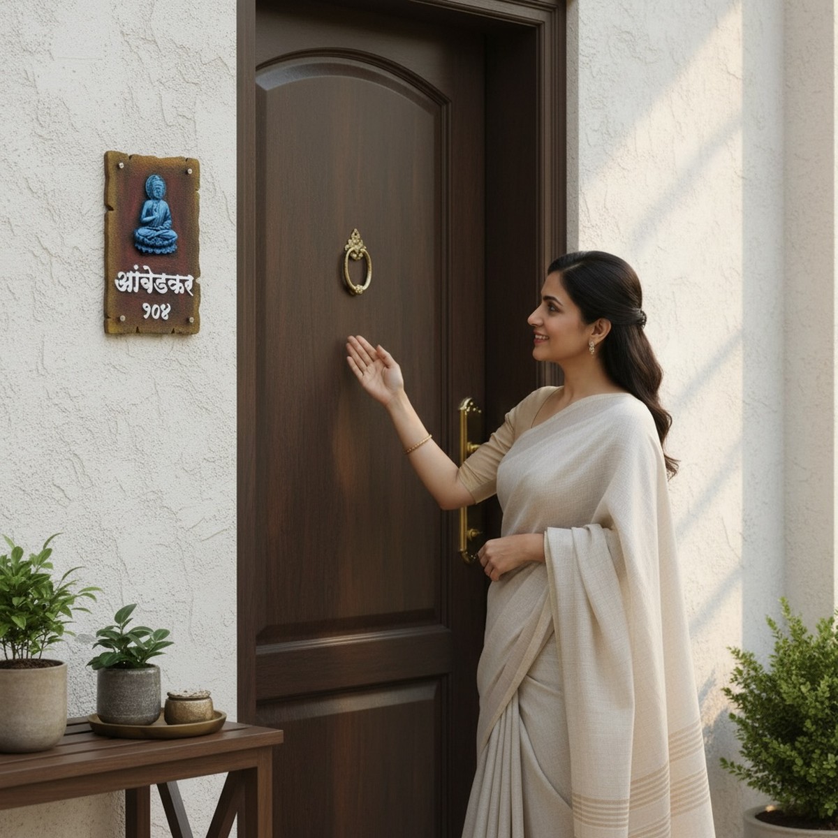 The graceful Buddha idol symbolizes peace, wisdom, and prosperity, while the premium stone texture adds a luxurious, earthy charm to your entrance. The personalized “Ambedkar” name engraving enhances the exclusivity of the piece, making it ideal for home entrances, apartments, bungalows, offices, and gifting.