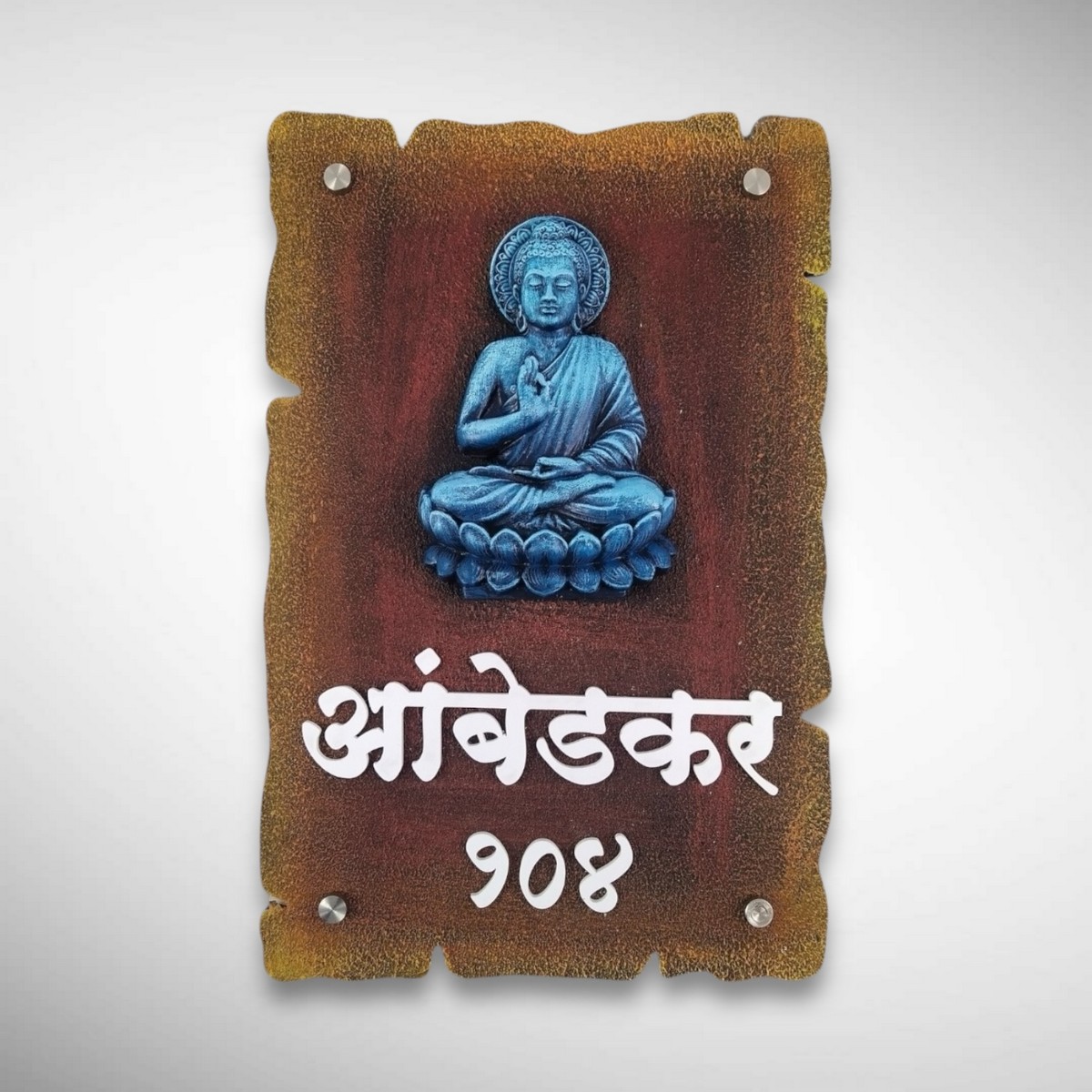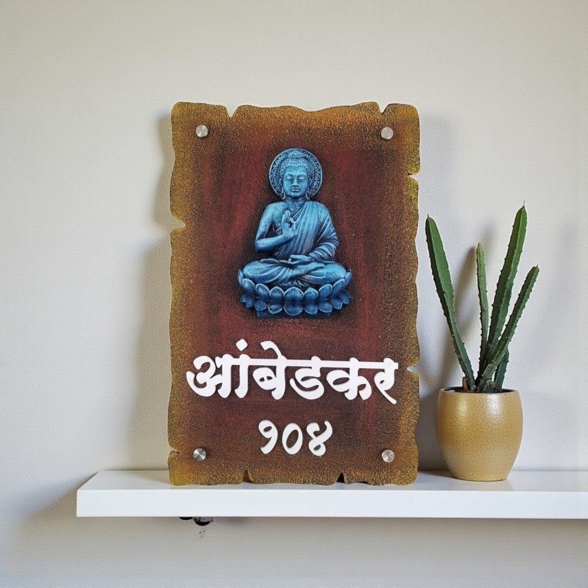 Crafted with durable materials and a weather-resistant finish, this nameplate is suitable for both indoor and semi-outdoor use. Whether you want to elevate your home décor or gift something meaningful to loved ones, this Buddha nameplate is a beautiful expression of serenity and style.